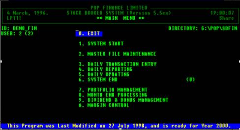 本系統專為處理證券融資的財務公司而設計,系統用戶如果有關係之証券公司,可將本系統與証券公司的電腦聯繫,從而做到一次資料輸入,兩個系統使用,減少人力需求外,更減少錯誤,非常有效.